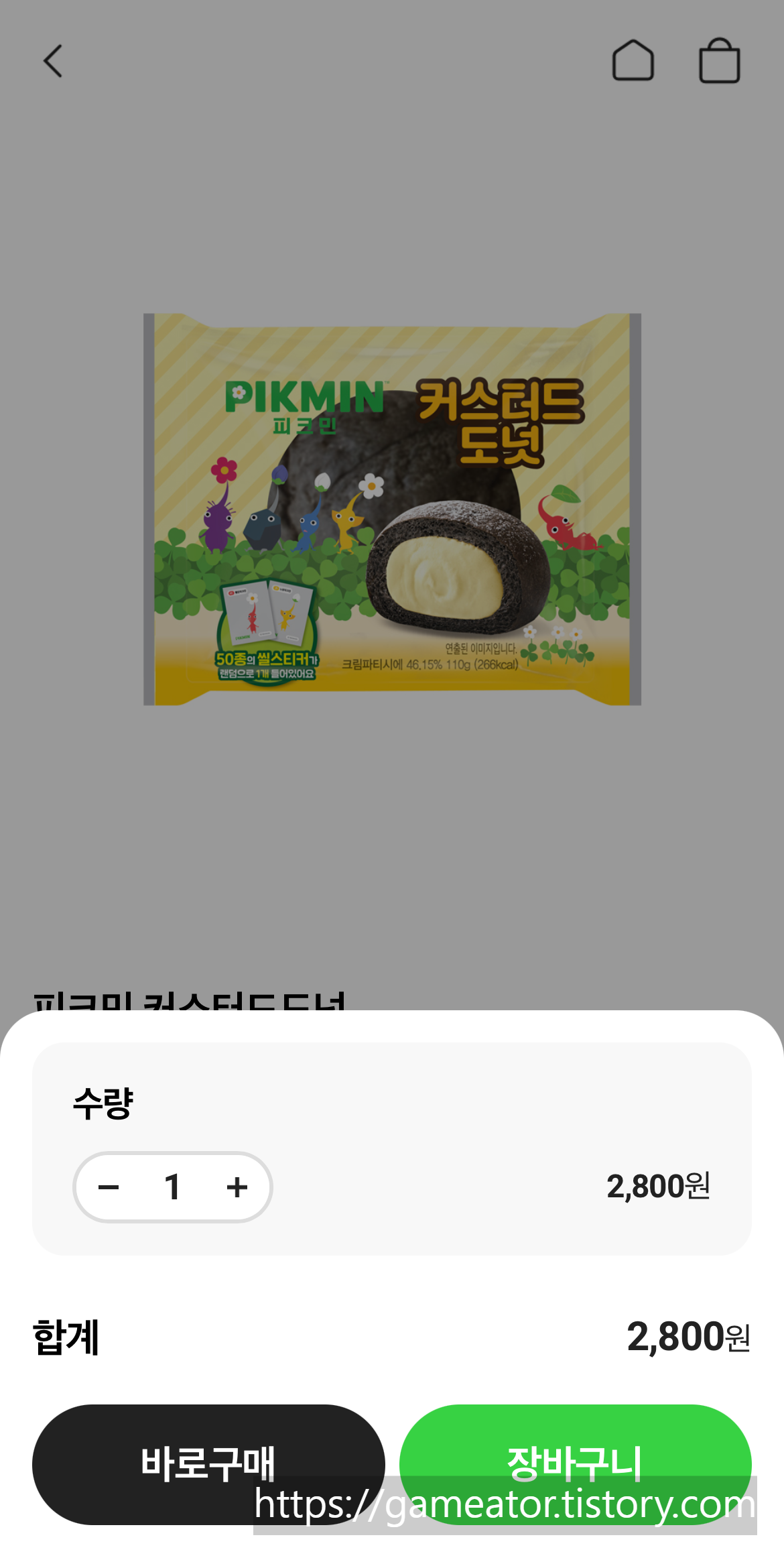 피크민과 관련된 상품이 여러개 뜨는 것을 확인 할 수 있는데, 위 예약구매가 가능한 상품을 눌러 [바로구매] 또는 [장바구니]를 눌러줍니다.