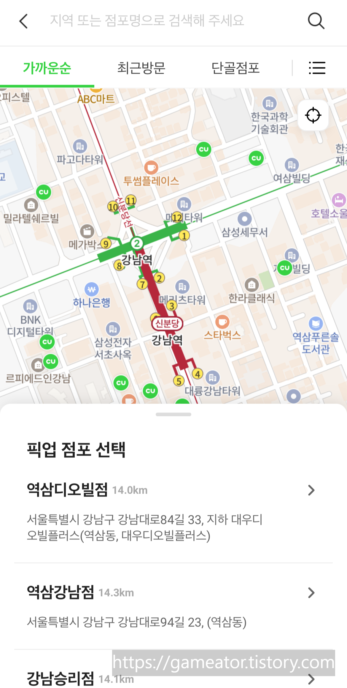 지도에서 예약구매가 가능한 점포가 뜨게되는데, 지도에서 수령하고 싶은 점포를 찾아 선택해주면 오른쪽 사진과 같이 날짜와 시간을 선택할 수 있습니다.