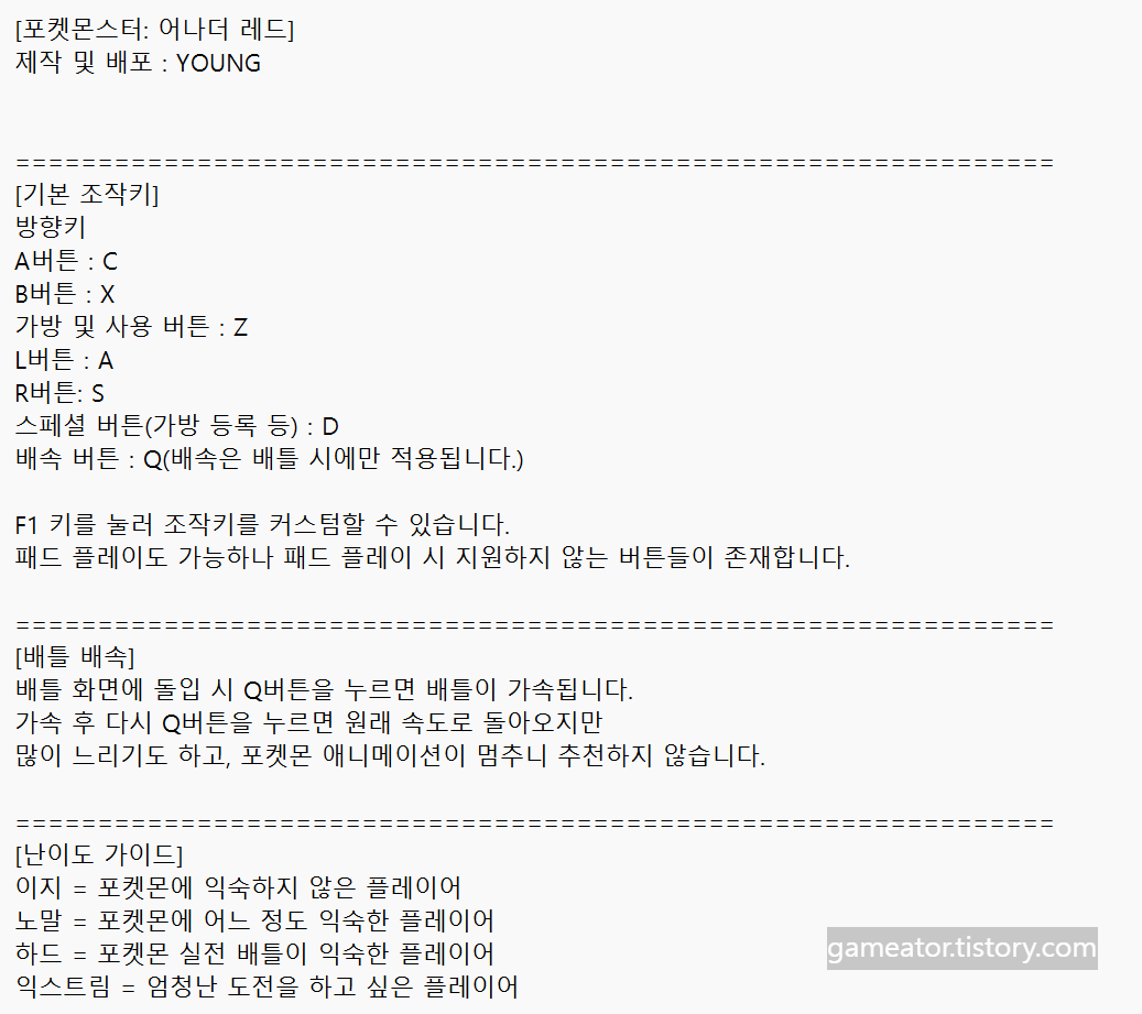 이지, 노말, 하드, 익스트림 4개의 난이도를 지원하며 포켓몬에 대해 잘 아시는 분이라면 하드 모드를 추천한다고 합니다.